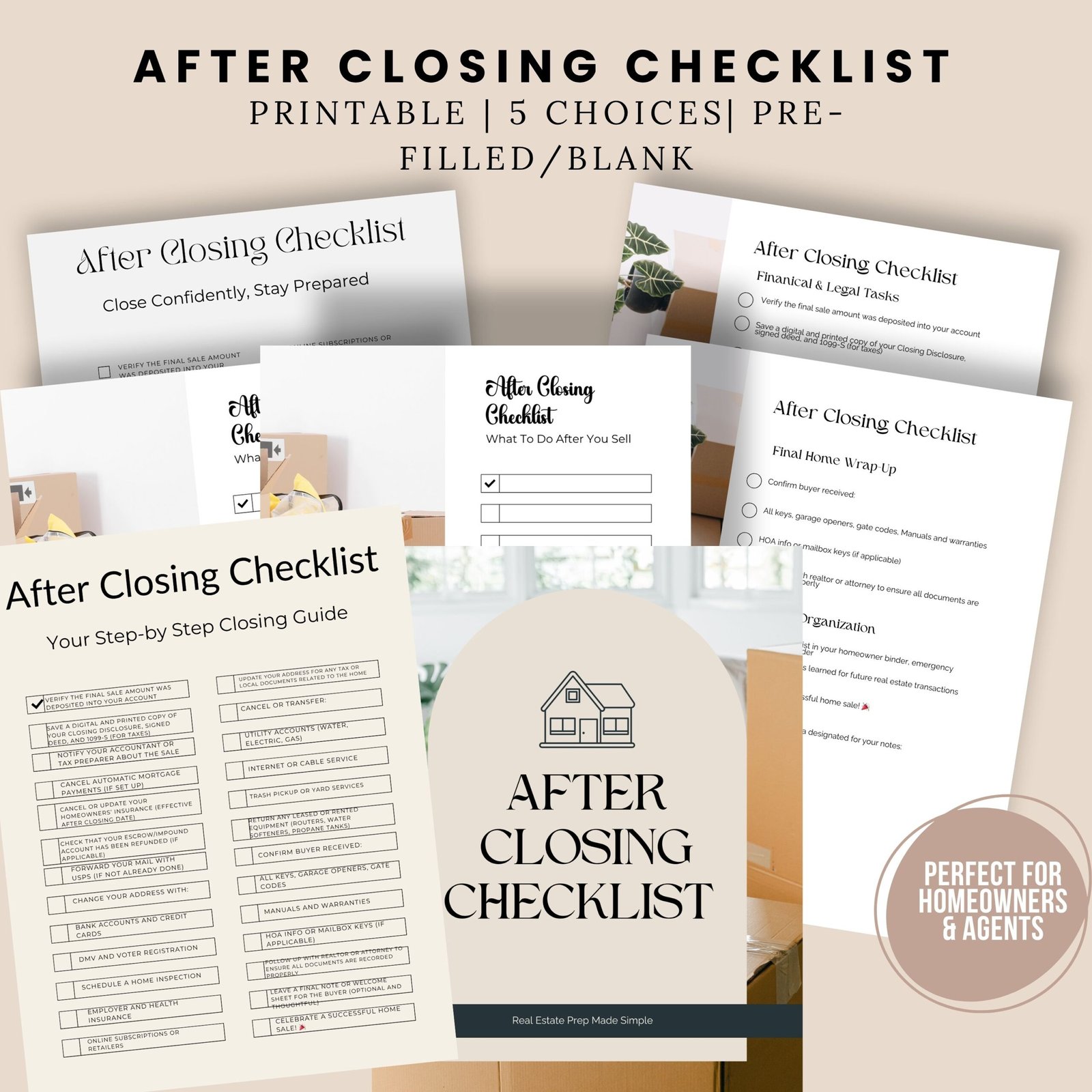 Wrap up your home sale with confidence using this After Closing Checklist β a helpful real estate printable that guides you through everything to do after closing day. Whether youβre a homeowner, FSBO seller, or realtor, this checklist ensures nothing is missed once the deal is done.